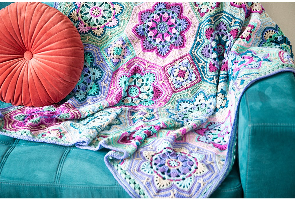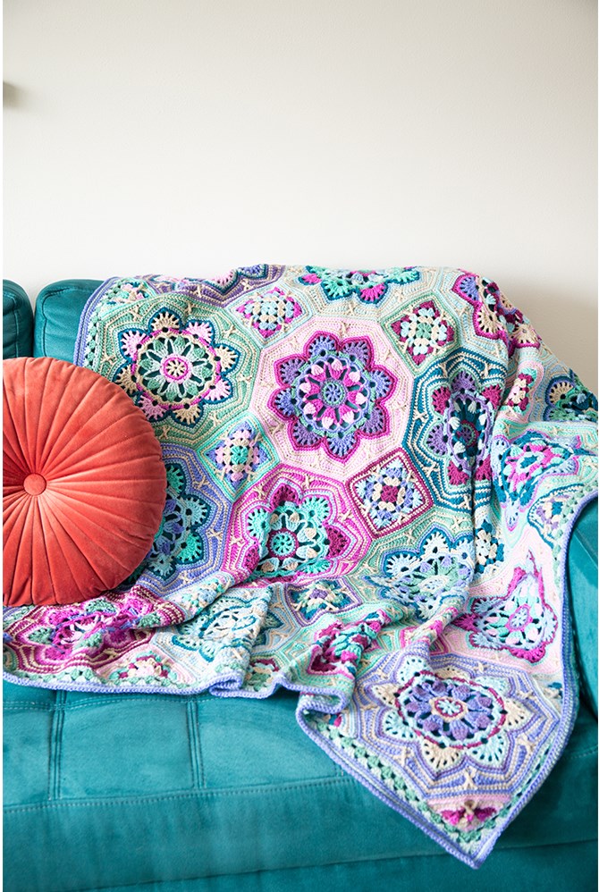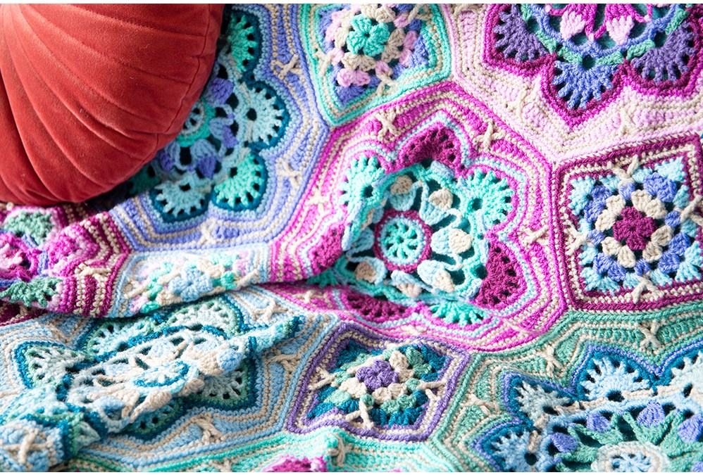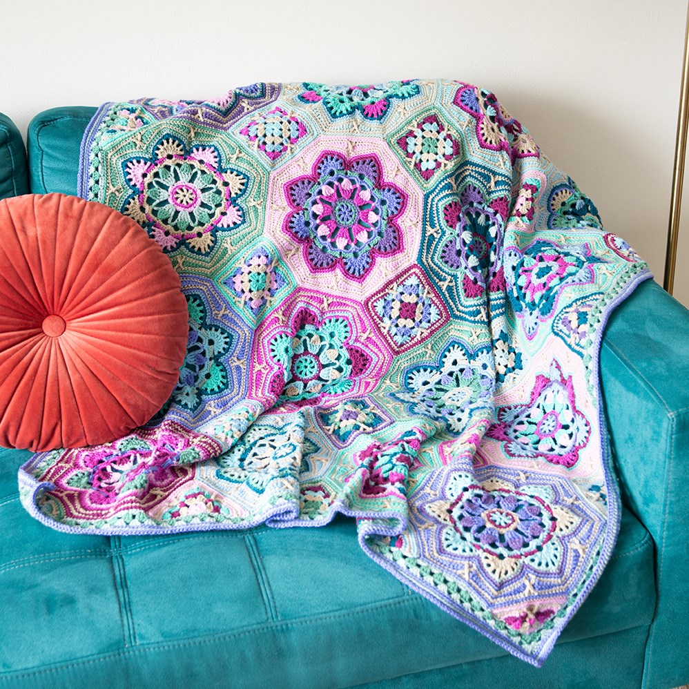 Persian Tiles Decke Häkelpaket - Begeben Sie sich in orientalische Sphären mit dieser wunderschönen, farbenfrohen Decke, inspiriert vom Original Persian Tiles Entwurf der bekannten Designerin Jane Crawfoot. Diese Decke hat die Bloggerin Lucia Dunn in einem neuen Gewand gesteckt und sich dabei von den verschiedenen Formen und Farben der schönsten Juwelen inspirieren lassen. Bestellen Sie das Häkelpaket und legen Sie los mit der Eastern Jewels Decke!