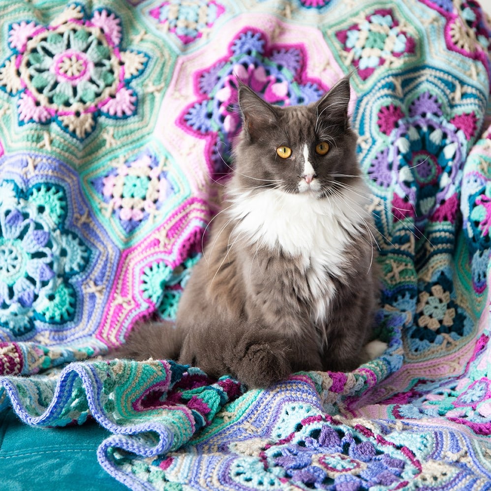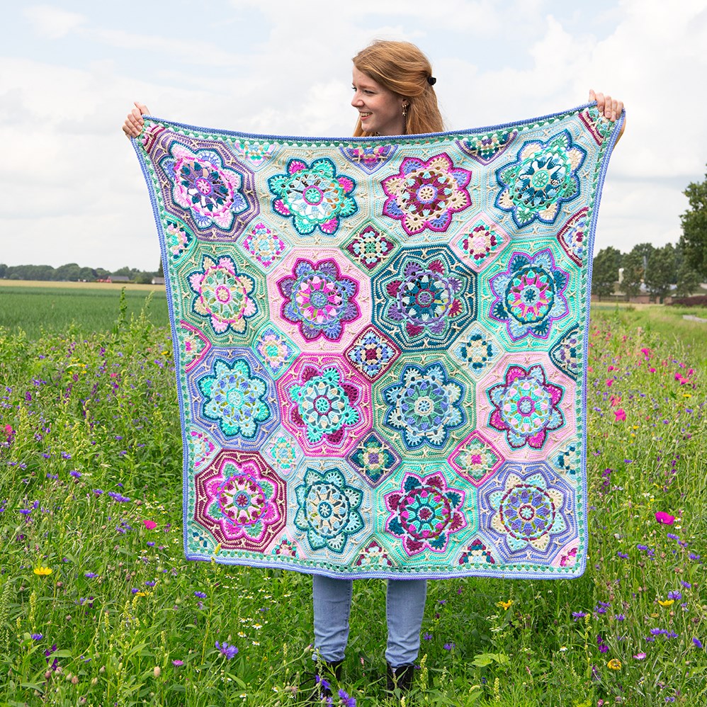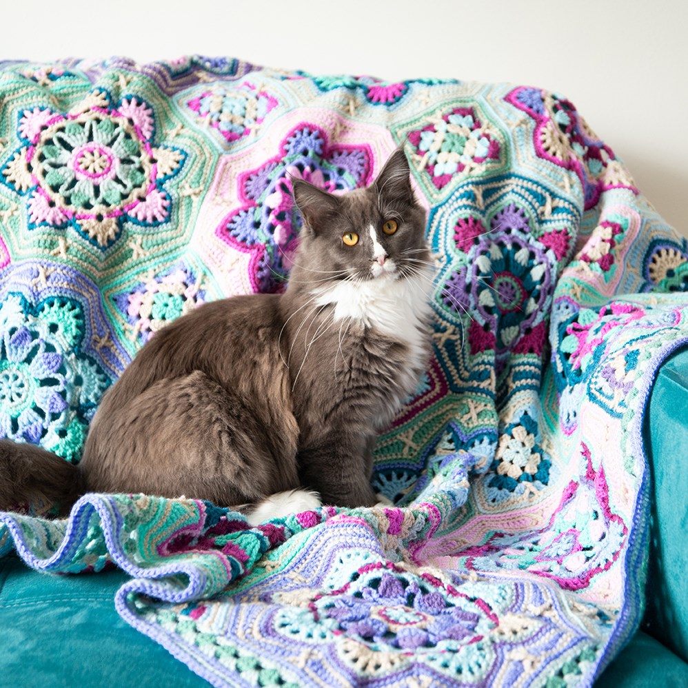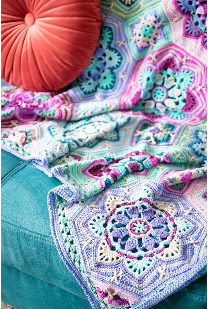 Persian Tiles Decke Häkelpaket - Begeben Sie sich in orientalische Sphären mit dieser wunderschönen, farbenfrohen Decke, inspiriert vom Original Persian Tiles Entwurf der bekannten Designerin Jane Crawfoot. Diese Decke hat die Bloggerin Lucia Dunn in einem neuen Gewand gesteckt und sich dabei von den verschiedenen Formen und Farben der schönsten Juwelen inspirieren lassen. Bestellen Sie das Häkelpaket und legen Sie los mit der Eastern Jewels Decke!
